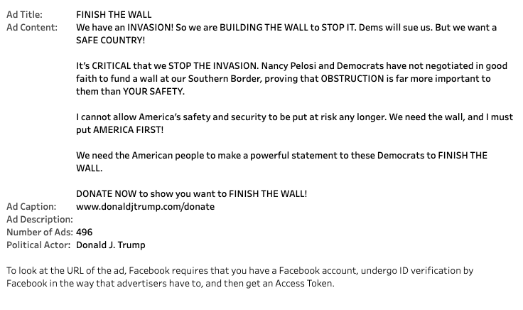 On the side of the “good” being done by Castro: We have, in the President of the United States, the head of a campaign that frequently talks about the “invasion” of the United States at the southern border. If you’d like to see just how often the campaign talks about it, you should check out this amazing ad-tracking tool for Facebook and Instagram: ad.watch. With it, you can see just how many ads the Trump campaign is running, where, and with what exact language. Here’s some data from my little state of Maine: